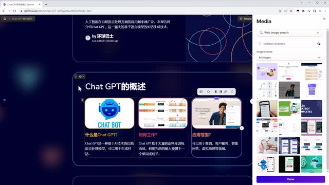 你可以对生成好的内容和图片在这里进行修改。点击图片后,上方的第一个按钮是随机切换图片,第二个按钮是自己选择图片。文字的操作也很方便,点击文字会出来选框,可以进行修改。