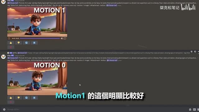 另一个remix版本就把motion改为一。猫癣灵的这个看起来很不错,表情跟走路都很正常。motion一的动作太多,看起来不自然,所以我选择下载motion零的版本。第二个动画我会稍微快转一些,影片才不会太长。再来我想生成汤米奋斗时受伤的样子。还记得leon nardo a i不给我台预商的图片吗?我会在配合plus的指令加上脸部擦伤scratches,看看结果怎么样。