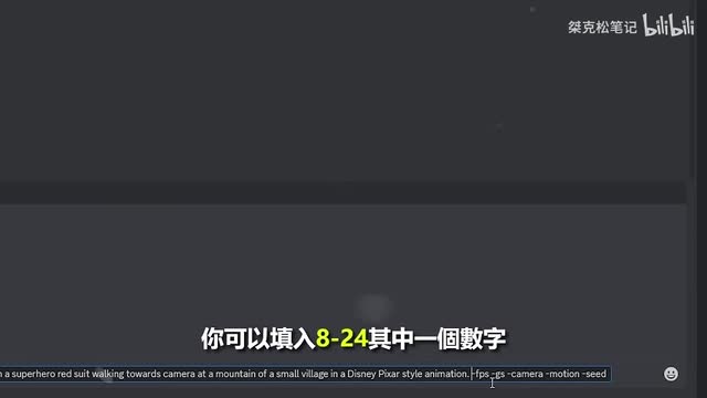 我先填入二十四,它在跑的同时间我会生成一个比较低的帧率,比较哪个成果,好像是是guide skill一样,是填入八到二十四是指你想要影片的结果跟你给的指令的创造性。这样讲可能有点模糊,如果你填入最高二十四代表产生的动画会跟你的令更贴近,也会比较少想象力和创造力。但是影片被扭曲的可能最高填入越小的数字,例如八产生的动画会跟你给的指令最没有关联,但是可能比较有创意,我喜欢从十六开始测试。camera可以决定动画移动方向,你可以输入近景。远景平行向左。向右等等。