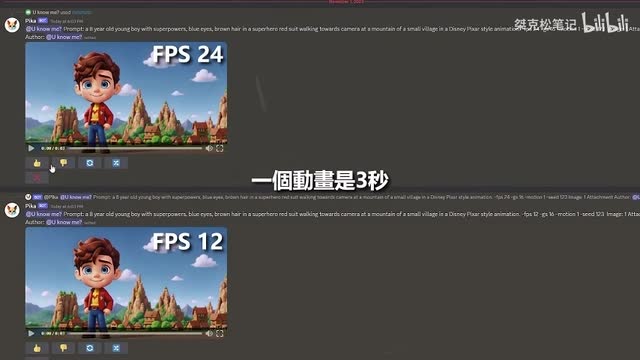所以我可以比较哪一个版本比较好,而且可以节省时间哦。点这个remix的按键,这样就不用重新上传图片或填写纸。我习惯用真率十二跟原本的二十四做比较。生成时间大概要一分钟,一个动画是三秒。看完两个版本之后,发现他们都没有走向镜头的动作。所以我打算用f p s十二的这个版本去修改指令一样按下remix按键。