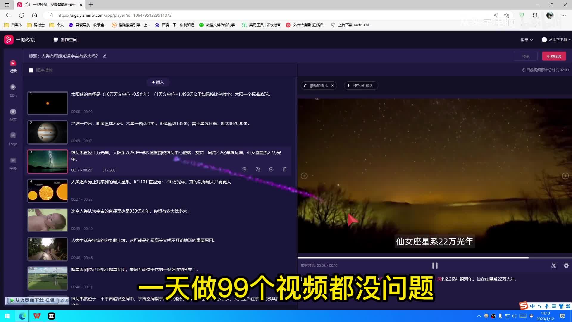 就这速度一天做九十九个视频都没有问题。