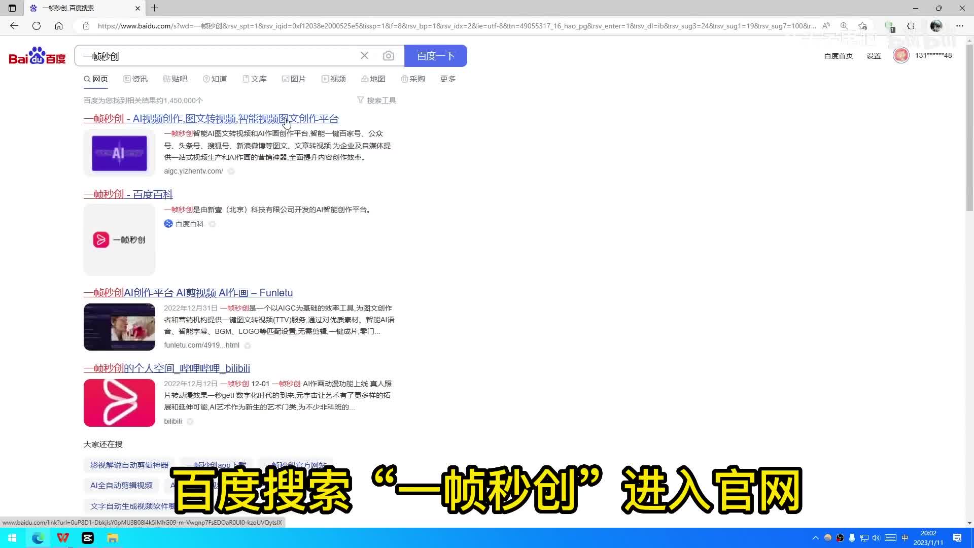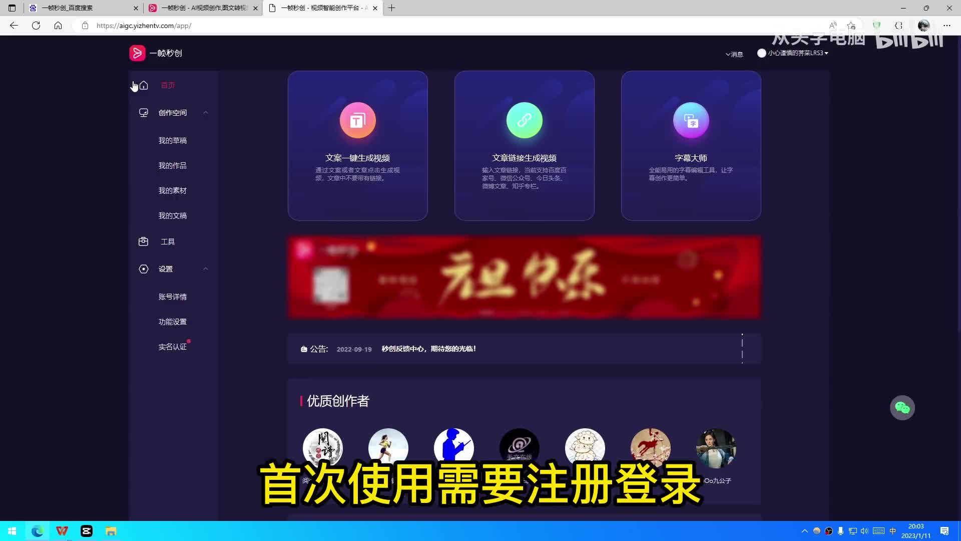 百度搜索一帧秒创进入官网首次使用需要注册登录。