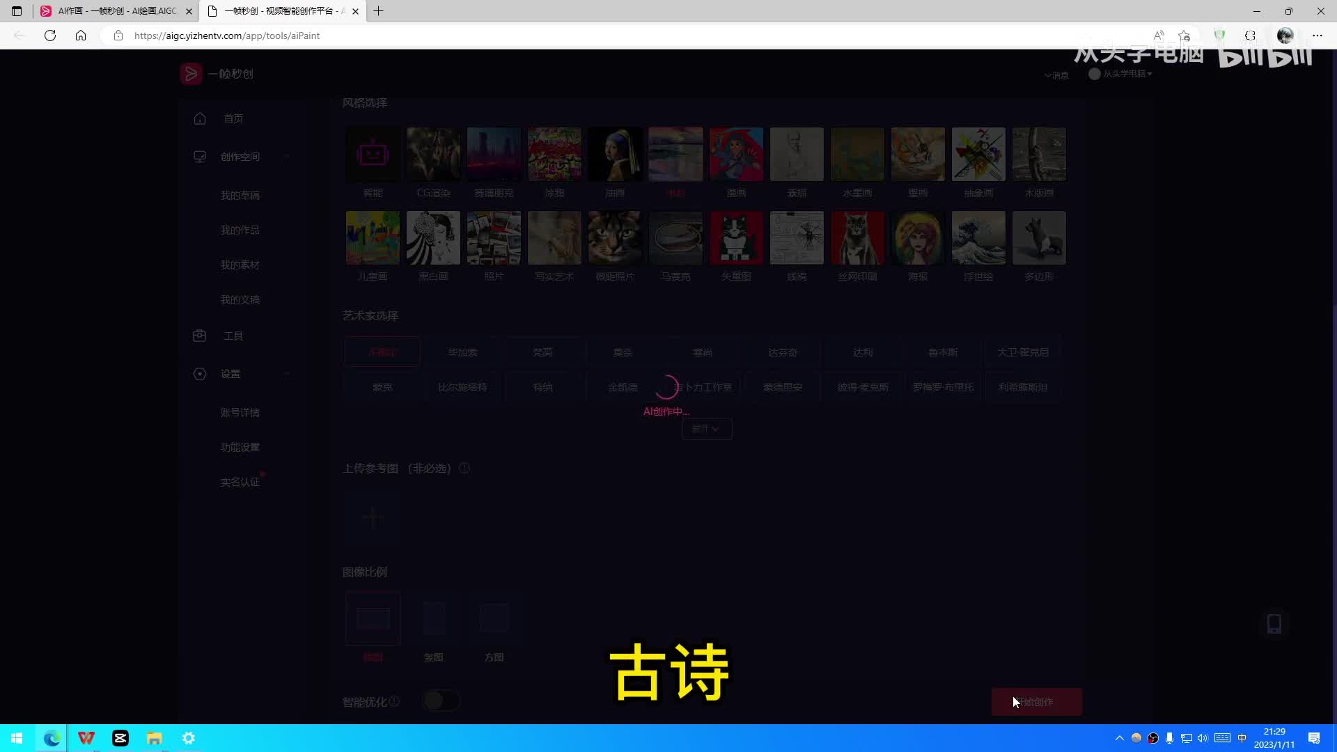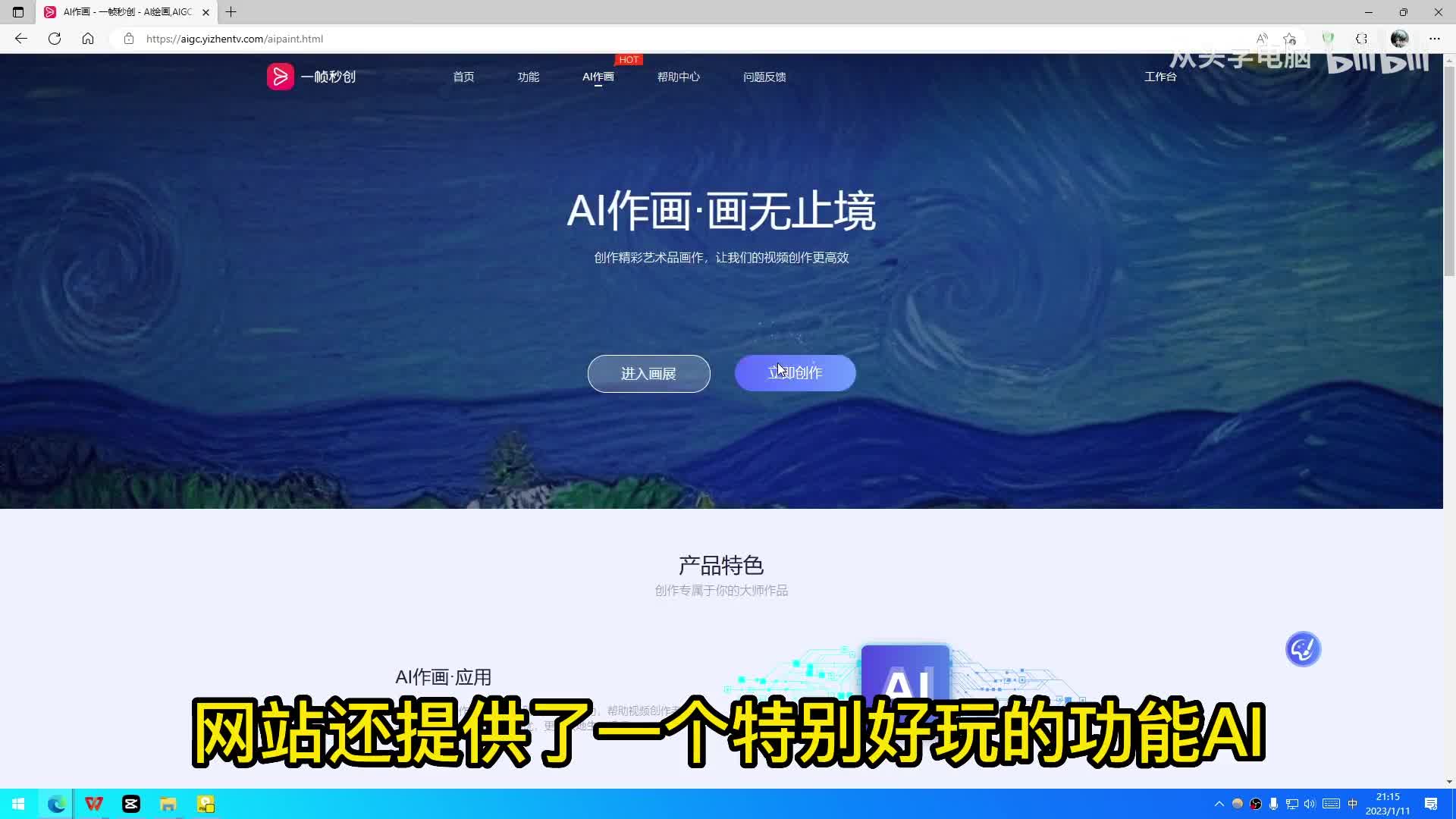 除了a i智能图文转视频,网站还提供了一个特别好玩的功能,ai作画。