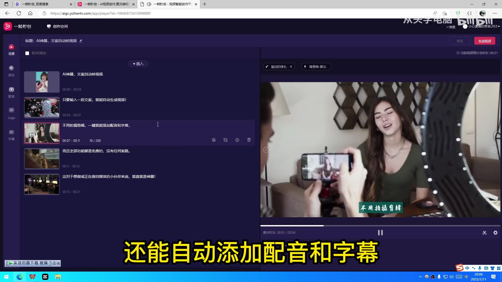 全自动a i智能匹配视频和背景音乐,还能自动添加配音和字幕。