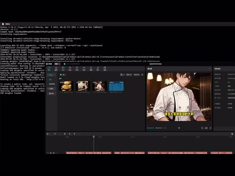 上去上去成功之后,这里就可以直接点推理生成了。你可以看到这个它正正在通过这个关键词生成,然后。呃。然后s d这边也在跑呃,等它生成一下,我这里有点慢,我这电脑有点慢。这里还有个功能就是。