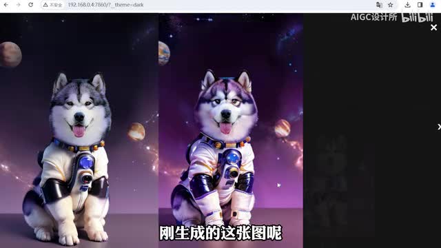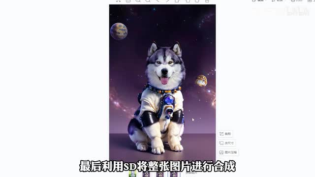 最近创意a i写真火爆全网,之前博主也是有出过教程,这次给大家带来了全新的宠物a i创意的教程。话不多说,我们直接进入正题。制作一张图的流程如下,首先用s d进行偷拍,得到一张可爱的哈士奇宇航服照片。
