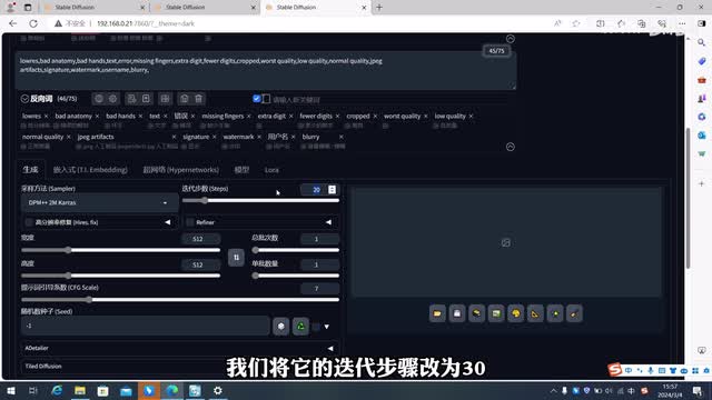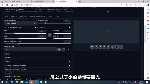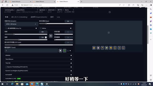 如果说这里的尺寸过于大的话,我们要将它适当的调小一些,反之过于小的话就要调大。因为在s e当中呢对于出图大小还是有一定的影响的。最后我们就可以点击生成。