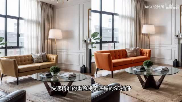 这款插件叫做impact ad anything,ipad anything, 实际上就是一个智能蒙版工具,非常适合做设计的同学。我们用一张图来做示范。看到这张图我想要修改它沙发的颜色以及地毯的颜色,还不想改变物品的外轮廓和形状,那就一起来操作一下吧。