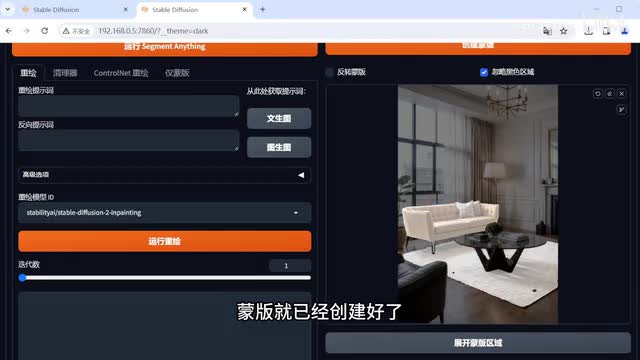 啊,它就会往外扩展一两个像素,还有一些小细节没有被创建遮掉的。同样的我们用笔刷去涂抹,点击,根据草图添加蒙版。就会把刚刚涂抹的地方增加上去了。