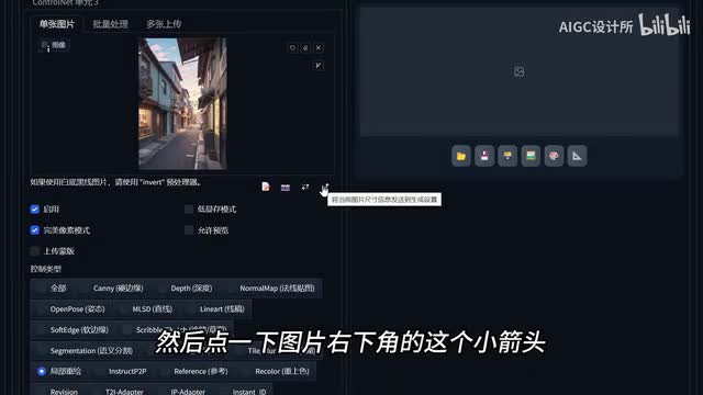 然后点一下图片右下角的这个小箭头,把当前图片尺寸加载到生成尺寸里面。