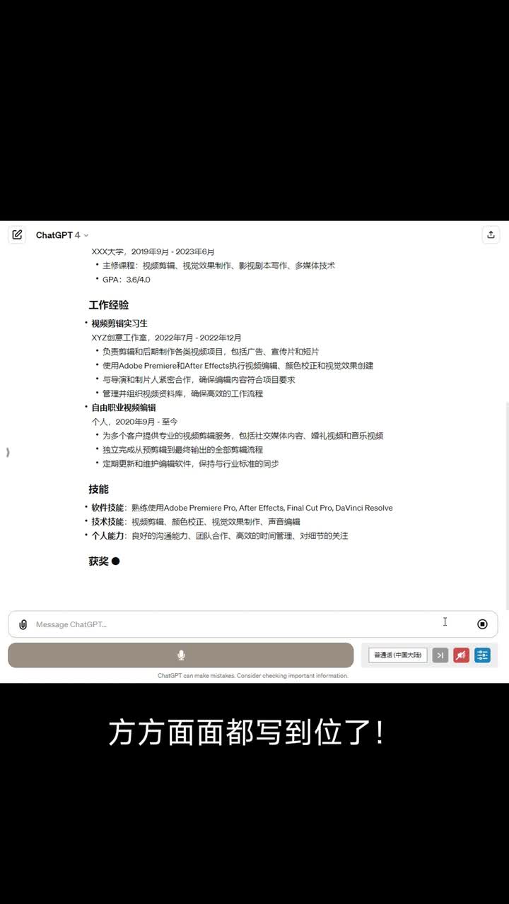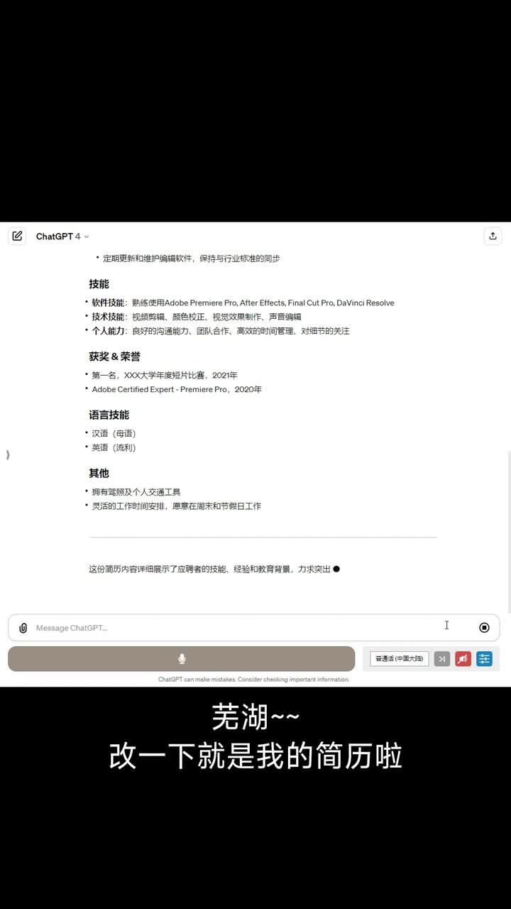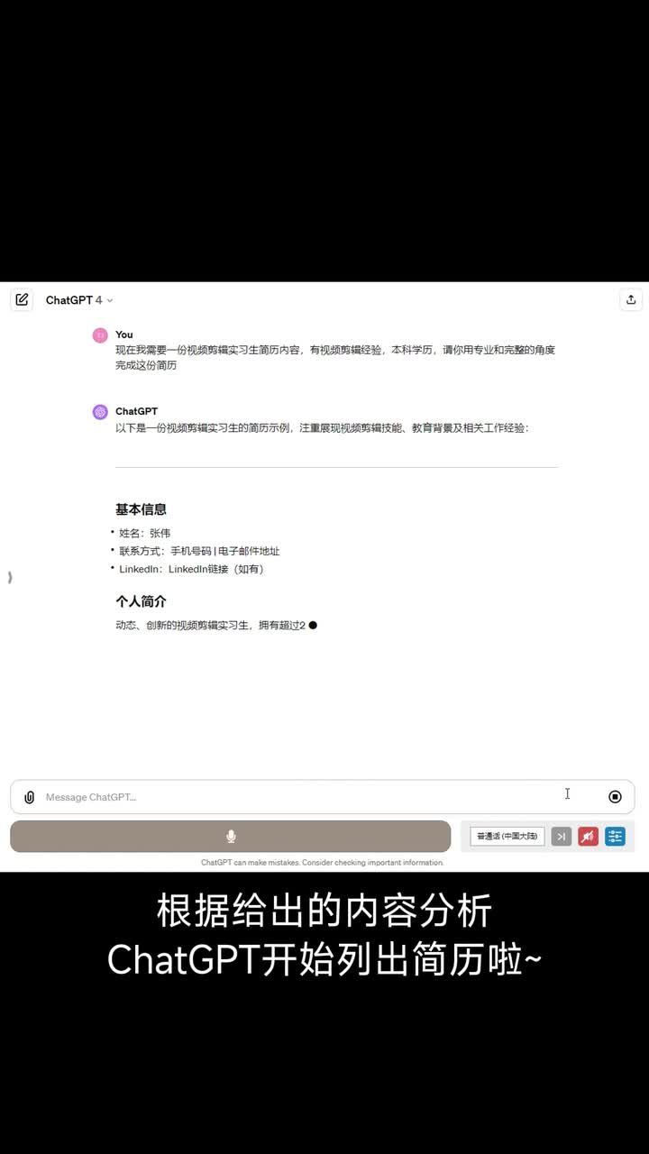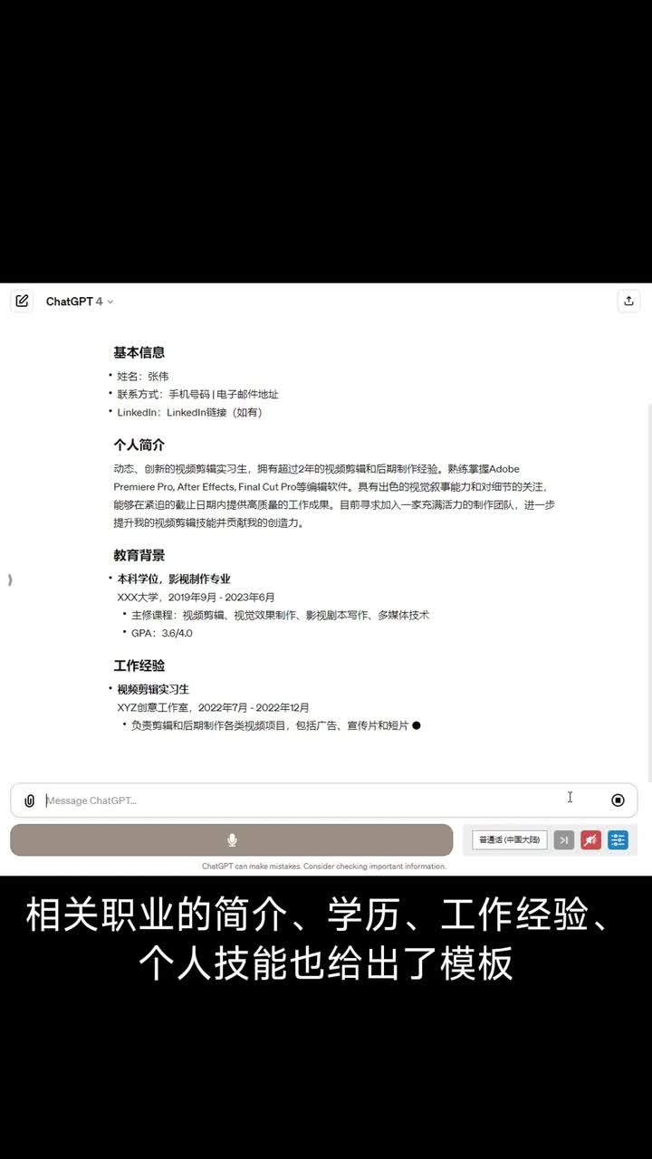 用chat g p t生成简历,让g p t生成一份视频实习生简历。