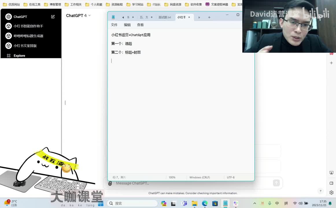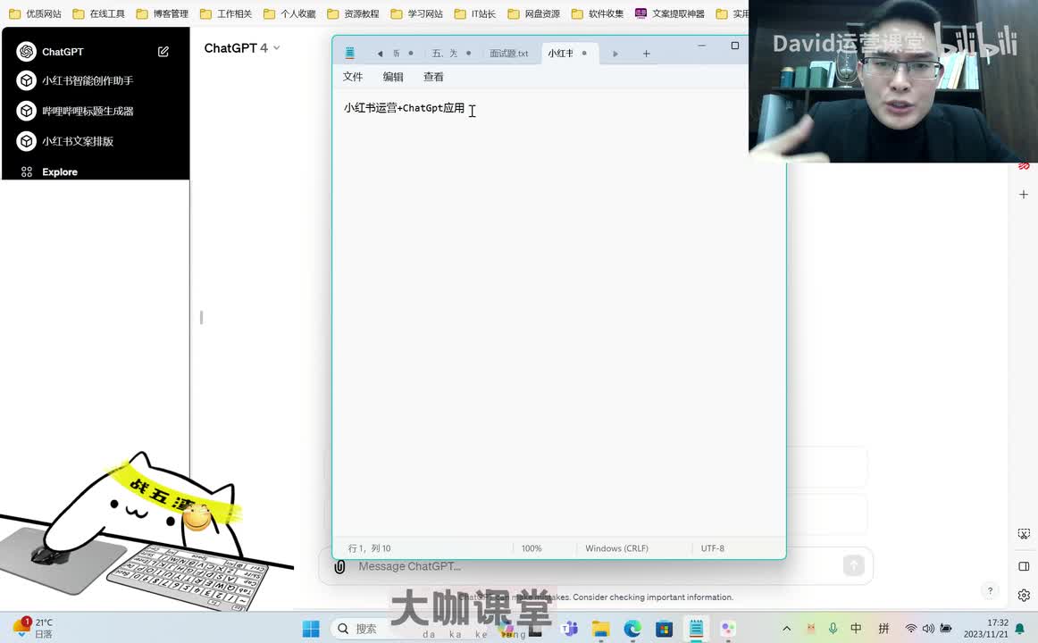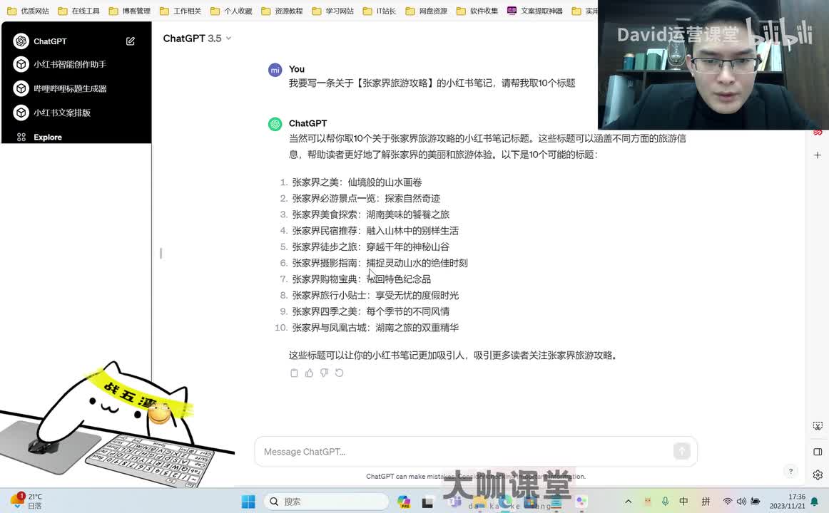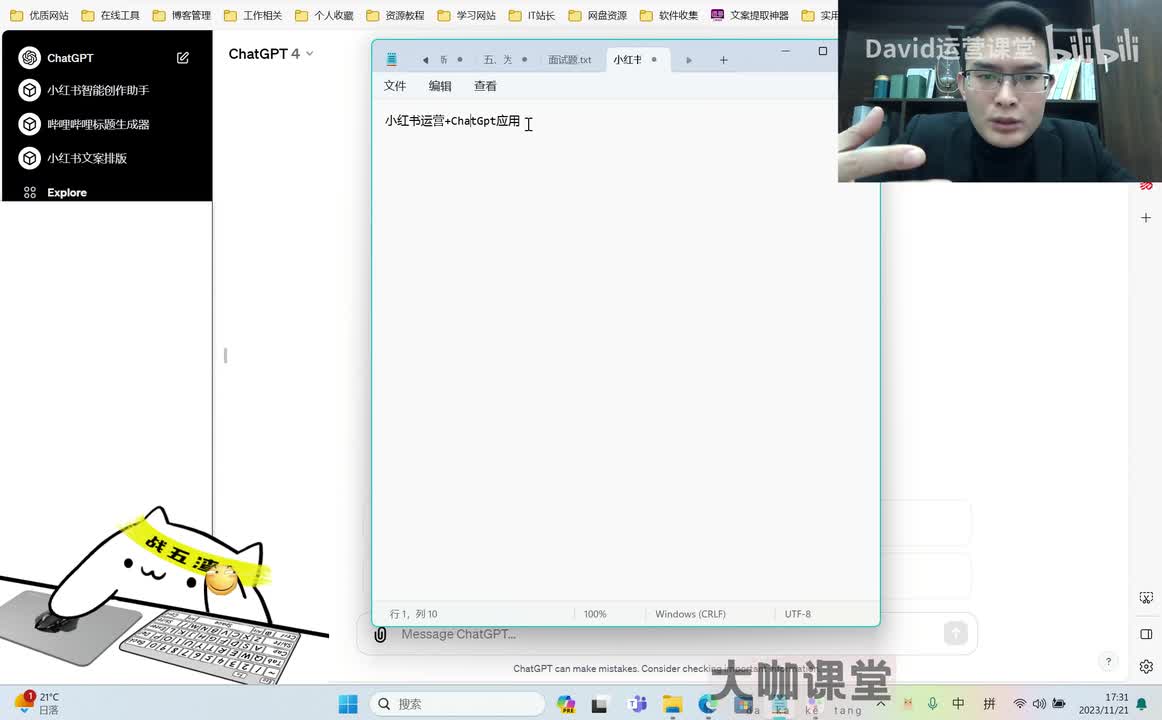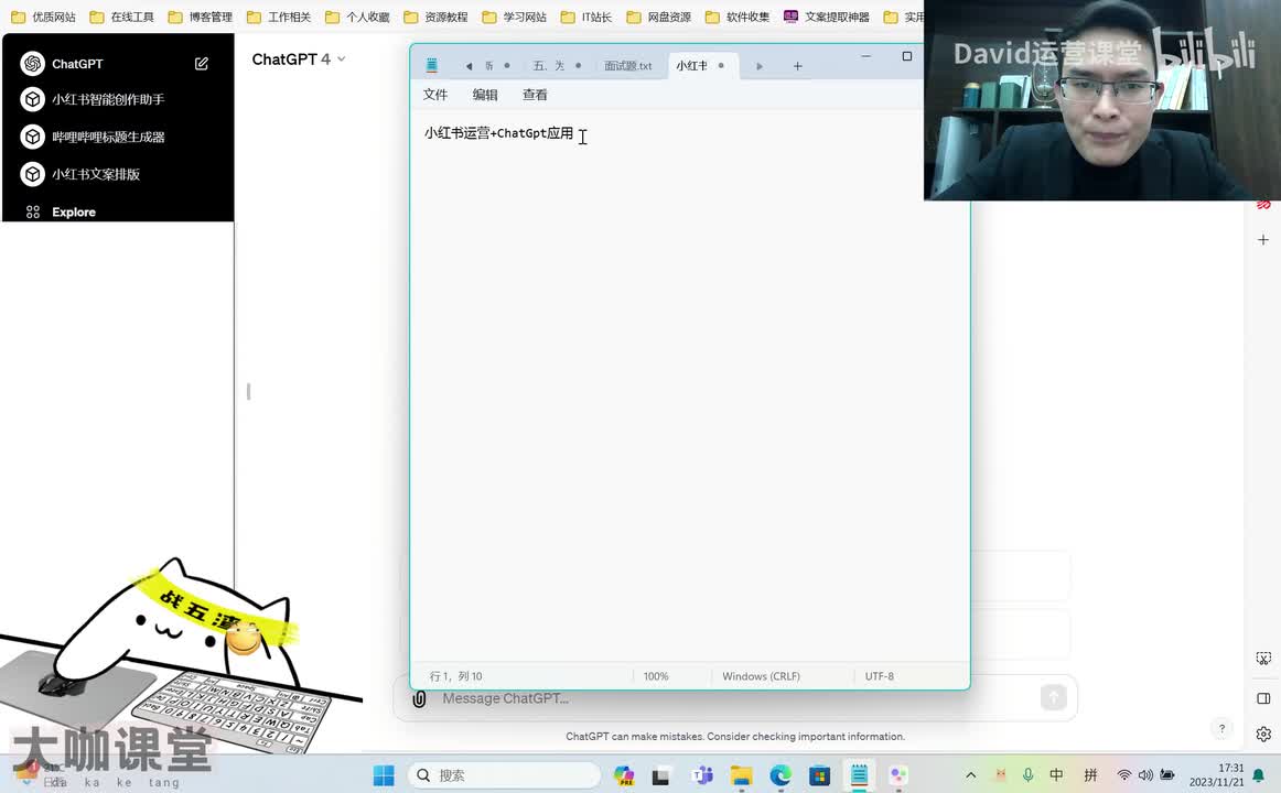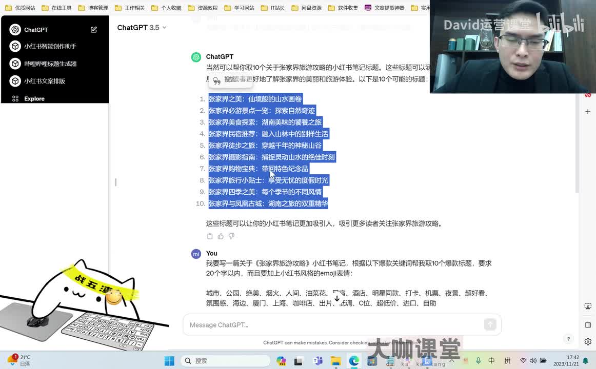 那么呢再去你把这个关键词,也就是说你在这个输入框当中把内容输入完成之前,它会在这个这个内容的。前面给你附上一些指令,让这个chat g p t呃去变得更加的符合小红书那样的风格。也就相当于它在这个你的内容发送之前呢,它是默默的在后面加了一些这样的一些啊就是指令啊融合进去。有可能啊有可能就是跟我这个一样的,对吧?然后把你要输入的内容呢放在这里,然后这个工具呢它就会是收费的,对不对?但是呢我们众所周知chat g p t三点五就是它是一个免费的东西啊,免费的东西其实我们正常来用的话,如果说你后面你做这个运营岗位,不管是你自己去就业也好,还是你给自己去做账号,你每天要出大量的笔记的时候,那么这个chat g p或者是这个a i的这个工具,你是不是一定得掌握?因为你掌握了它,你才能提升你的效率,并且把你不擅长的东西用它来给你码出来。o k那么这一点我相信大家能够明白吧。那么这个这个就是我们本节要跟大家讲的一个特别小的一个知识点啊。