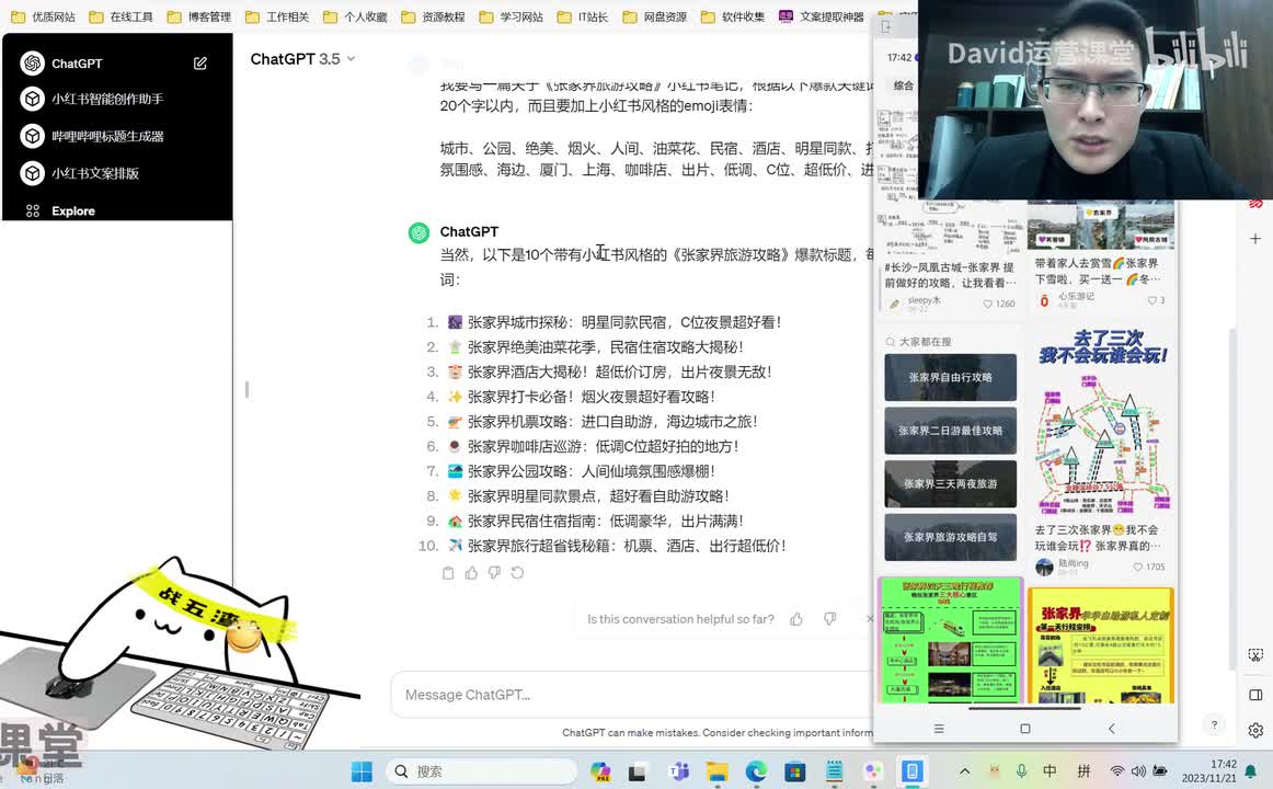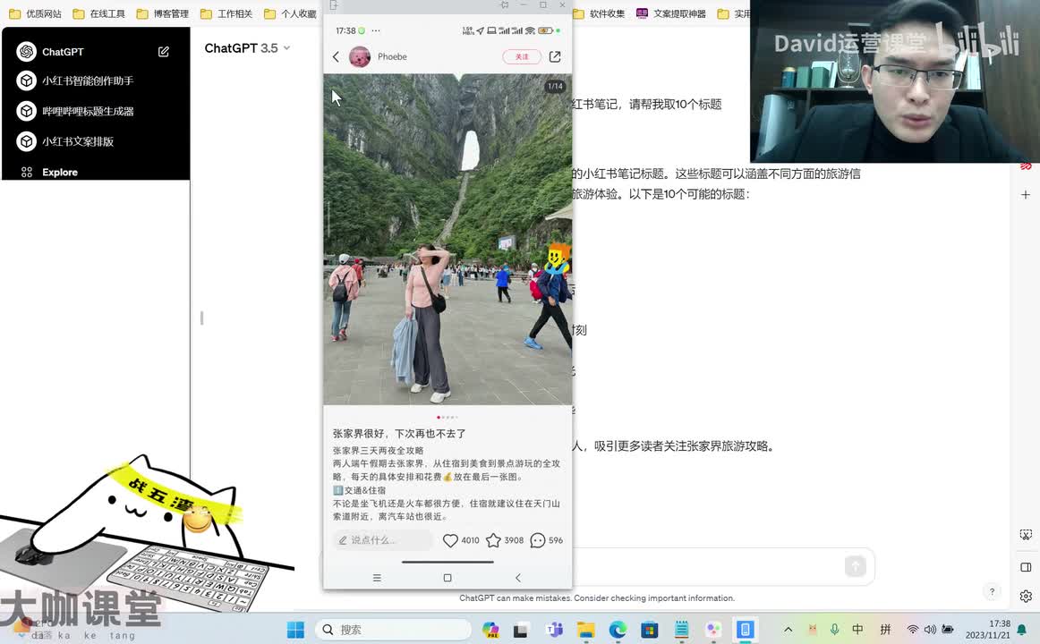 但是呢这些东西呢在小红书上面可能还显得就是有点普通了,对不对?就是我们正常的大家浏览惯的这个小红书,你会发现小红书上面的一些标题啊,它会有它自己一些独特的风格。什么风格呢?比如说我们现在我们打开这个小红书,我们来看一下。嗯,嗯嗯。我们来浏览一下。呃。我们来看一下啊张家界旅游攻略。