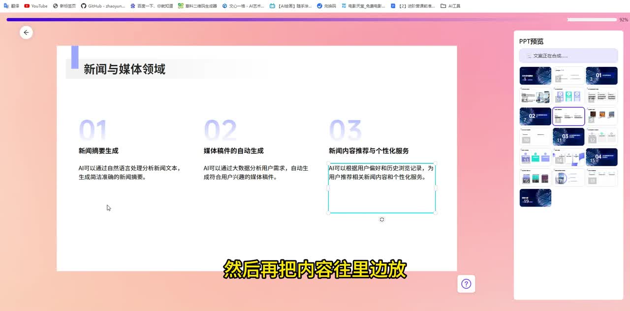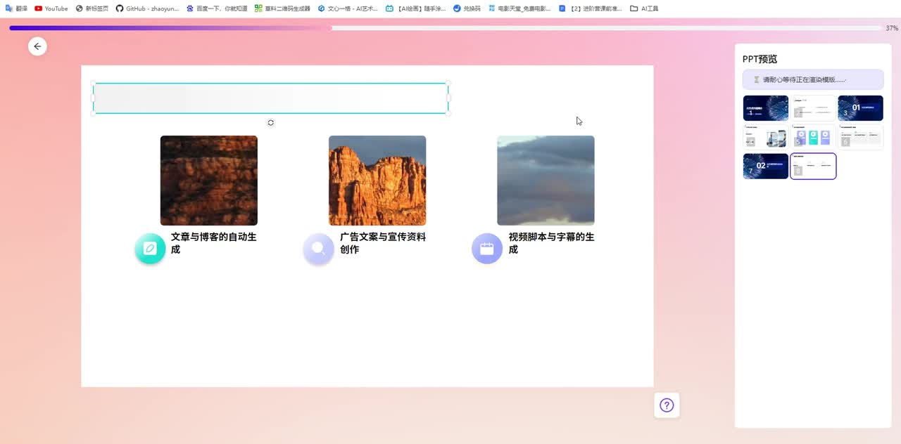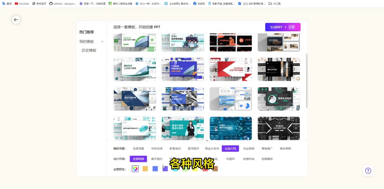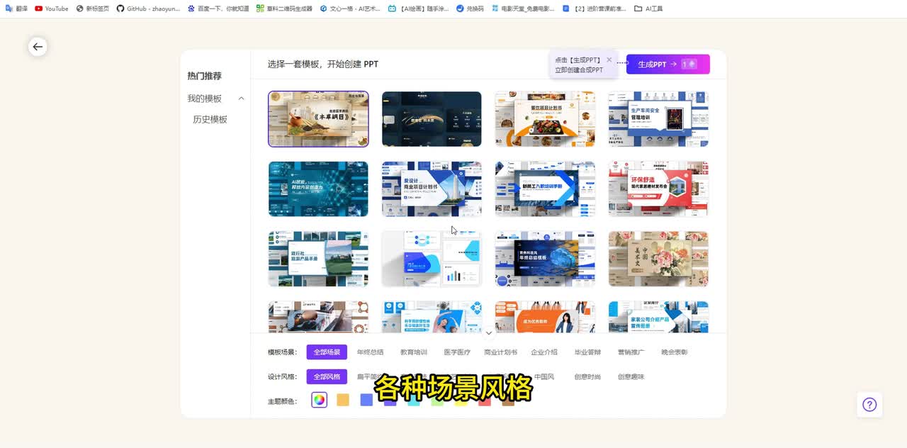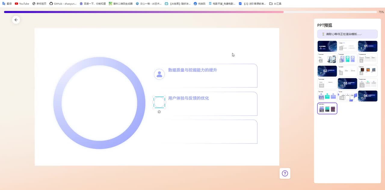 帮我们生成p p t,当然里面也是可以改的。你看他动作也是非常的快。而且整个的样式还是比较不错的,挺好看的。颜色啊。