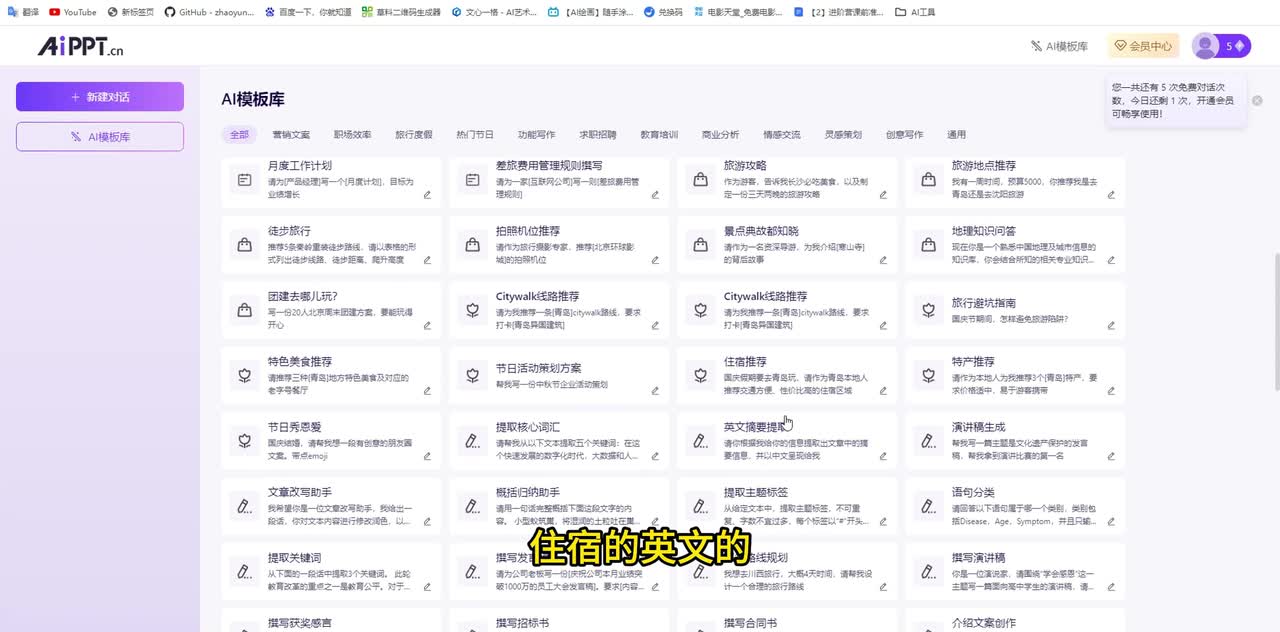 科学教案生成啊这些。教案方面就是比较适合教育方面的。还有下边的各种方案,住宿的英文的旅游线路规划。诗词创作工作总结,哎,这个用的比较多,我们试一下。