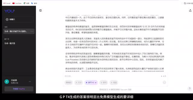 翻译页面。g p t四生成的答案很明显比免费模型生成的要详细。