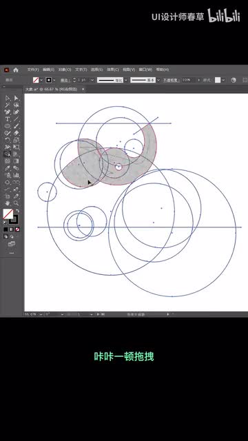 那可以试试这个自动吸附工具,选中后只需要轻轻一拖就对齐了,然后再用形状生成器工具咔咔一顿拖拽,按住alt键删掉不需要的地方就能生成想要的形状,最后填上颜色,一个很规范的图形就搞定了。