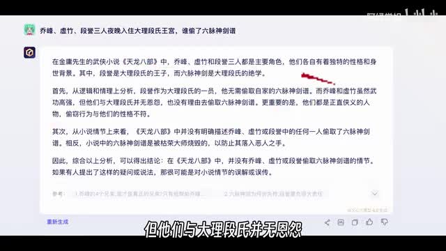 只有文心一言说乔峰和虚竹虽然武功高。高强,但他们与大理段氏并无恩怨,也没有理由去偷取六脉神剑谱。其他得分,文心一言不得分。