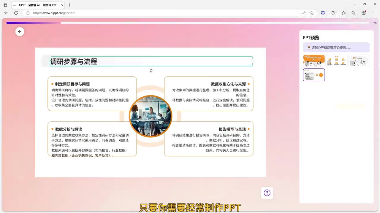 不得不说这个a i也太强了。无论你是职场白领、创业者、教师还是学生,只要你需要经常制作p p t,那么这个a i p p t工具都能为你做了小米电视以上的时间,这就是a i智能的生产。