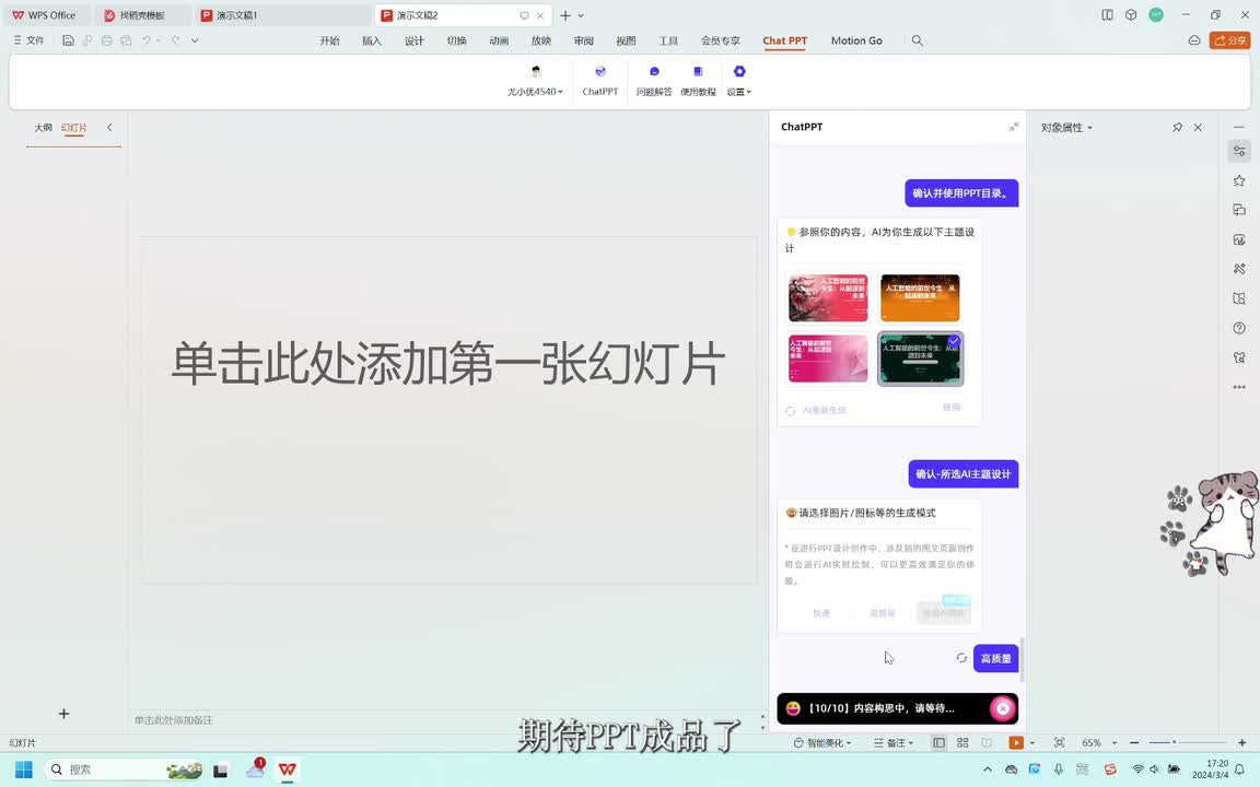 图片模式选择高质量,期待p p t成品了。第一章p p t生成,继续等待。