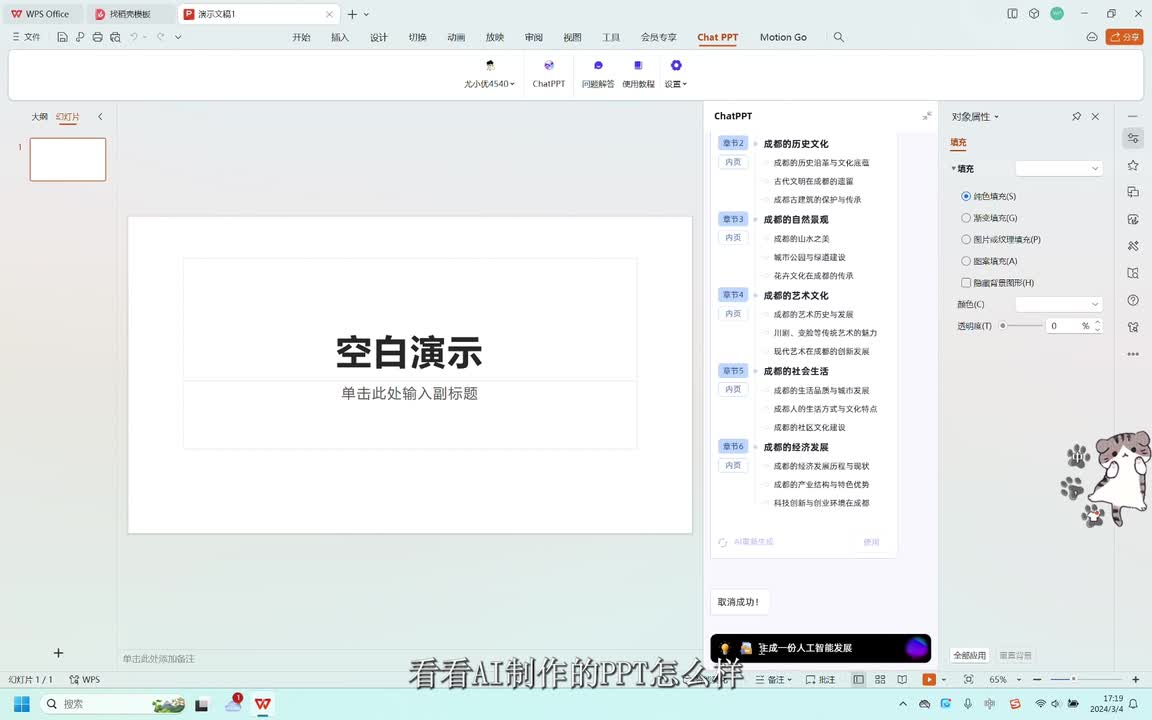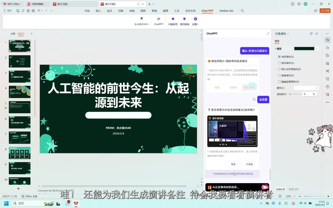 哇,还能为我们生成演讲备注。待会我倒要看看演讲者模式下的备注怎么样。
