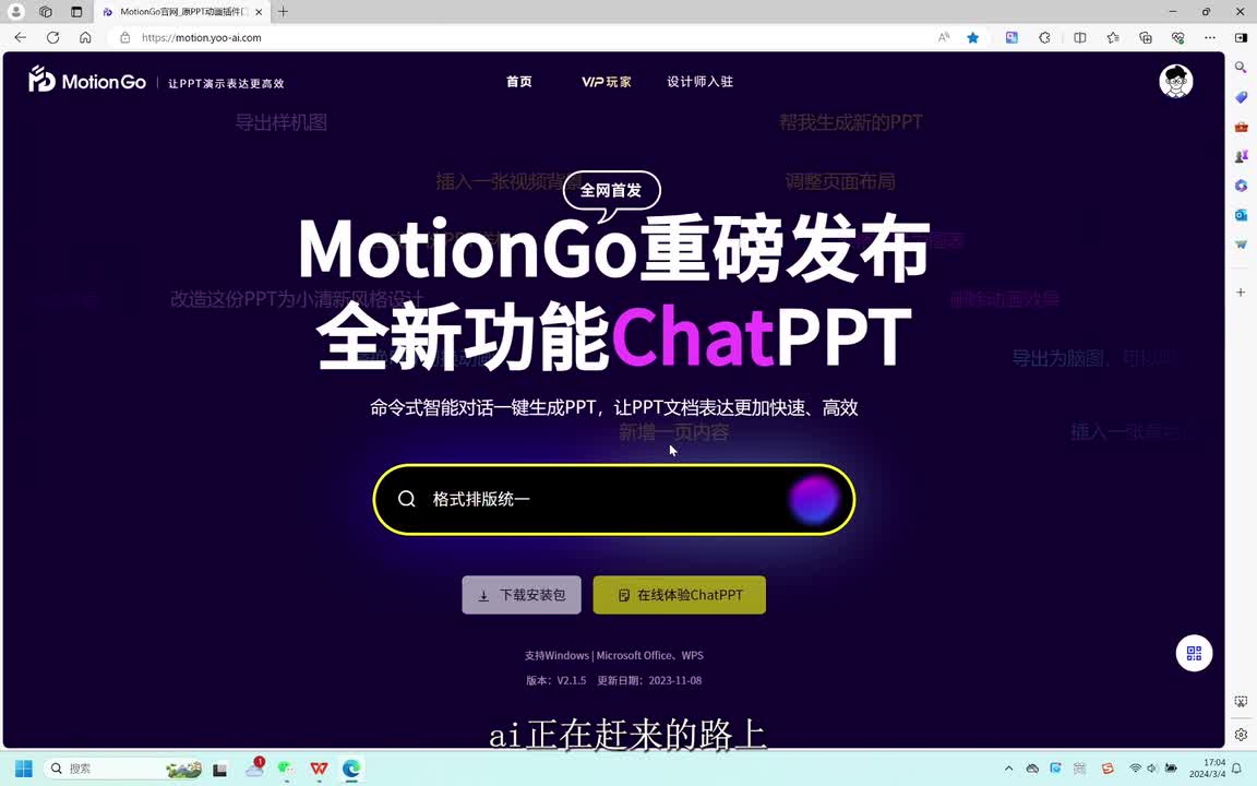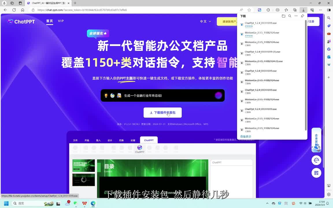 然后点击在线体验check p p t,点击下载插件安装包,然后静待几秒。找到edge浏览器刚下载的安装包所在的文件夹。
