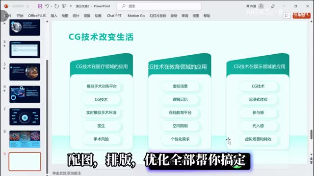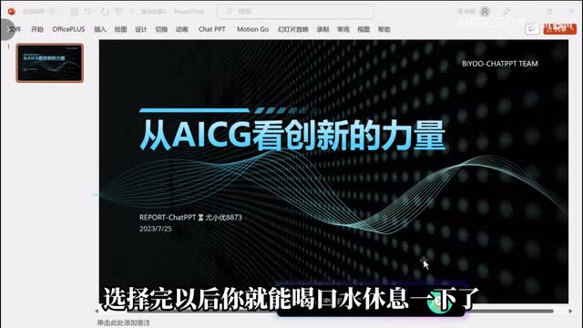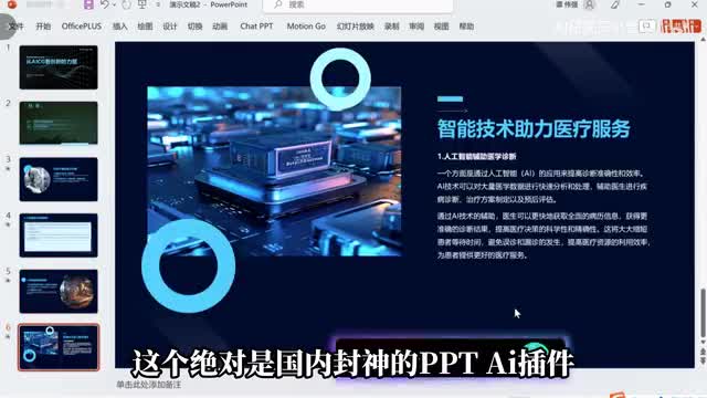 下载好安装包并完成安装后,只要打开p p t选择motion go,找到chat p p t,在插件输入一个p p t主题,点击一下按钮,它就会给出多个大刚任你选择。