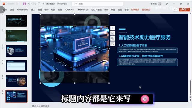 它会自动帮你生成整个p p t标题内容都是他来写,配图、排版优化全部帮你搞定。
