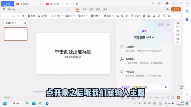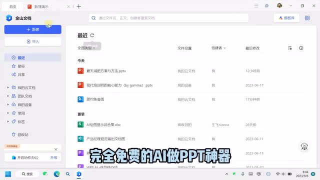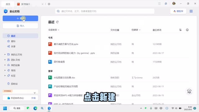 我们打开金山文档,点击新建,点击演示,点击空白演示,下方就有一个w p s a i。