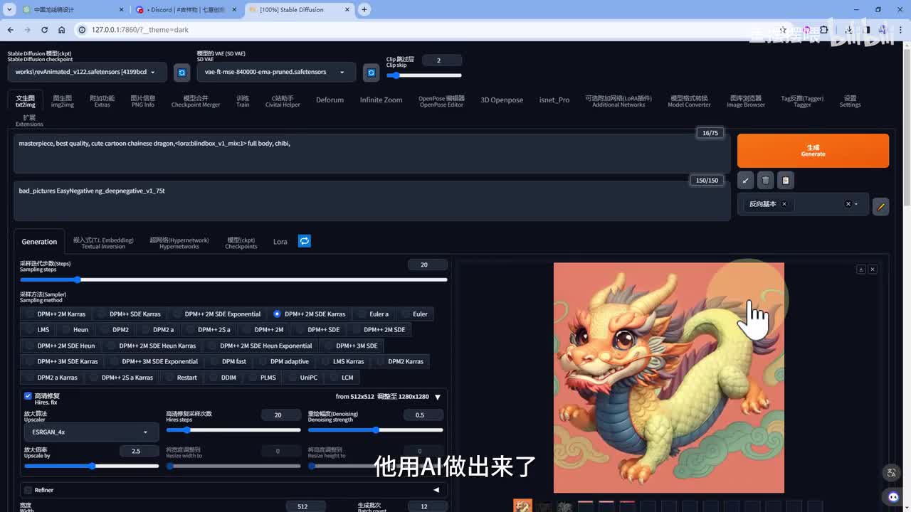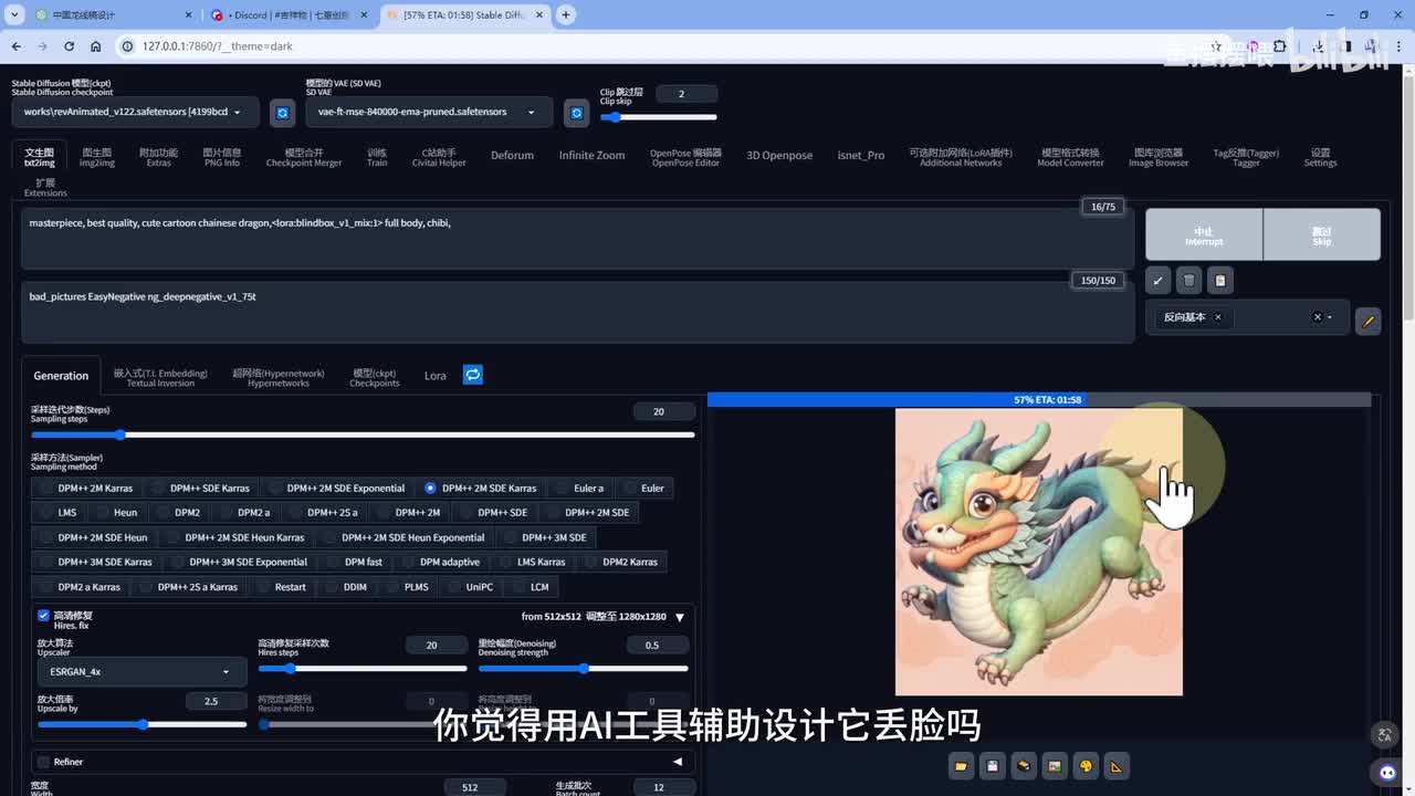这里呢我们要借助一个非常常用的盲盒的lora,然后呢用一个常用的写实模型。再借助我们最常用的control net的canny模型处理一下描述语,大概的写一写就可以了,可以让它多随机发挥一下嘛,加点高清修复,抽个卡上色,变成吉祥物,就一步就完成了,是不是挺简单的。这里你也可以多抽抽卡,甚至你也可以去改改颜色,加点细节,对吧?其实我觉得在设计的过程中用了a i不丢人。
