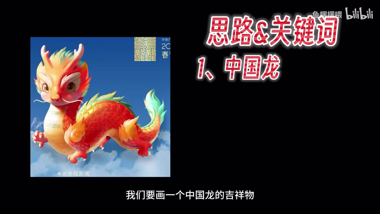 只需要几分钟,相信你也能做出来一个还可以的龙年春晚吉祥物。首先明确我们的目标,我们要画一个中国龙的吉祥物,卡通的风格全身,然后是漂浮在空中,有一定的中国文化的元素,大概就是这样。