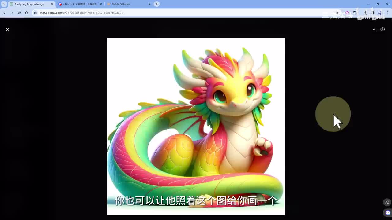 如果你没啥灵感的话,你也可以直接把这个图发给chat g p t,让他给你分析一下,让他帮你写一组关键词。接着呢你也可以让他照着这个图给你画一个。当然你也可以把这些关键词试着给mid journey或者是s d,让他们也来反推或者说画一画。