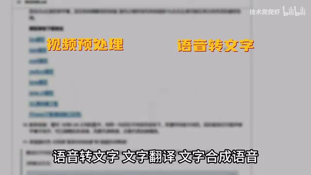 我们先来看一下这个项目的github主页,拍video n可以将视频从原始语言翻译,并且翻译成另外一个语言,或者给视频添加字幕。项目共有四大模块,视频语语音、语音转文字、文字翻译、文字合成成语音,使使用了当前炙手可热的主流技术方案。其中视频预处理使用了f m pack,此模块负责将视频中的音频提取出来。