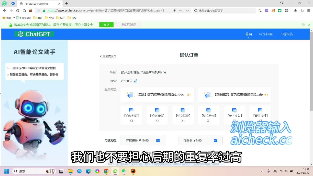 a i可以帮我们生成论文封面、论文提纲、论文摘要、论文致谢、参考文献和查重报告。在这里我要说的是。a i check这个网站生成的查重报告一定会低于百分之二十。