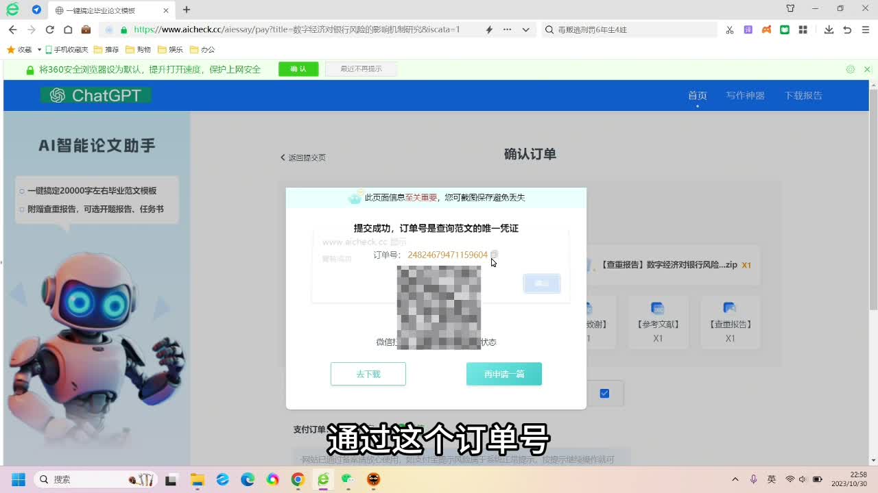 进行付费。在付费完成之后呢,我们就可以有了一个订单号,通过这个订单号就可以进行下载。下载呢大概需要十分钟左右的时间。