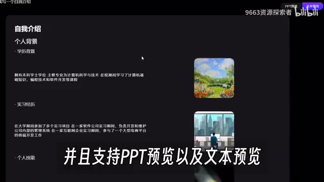 你只需要输入帮我写一个自我介绍,然后点击开始,它就能够快速的通过a i生成出你心仪的p p t。