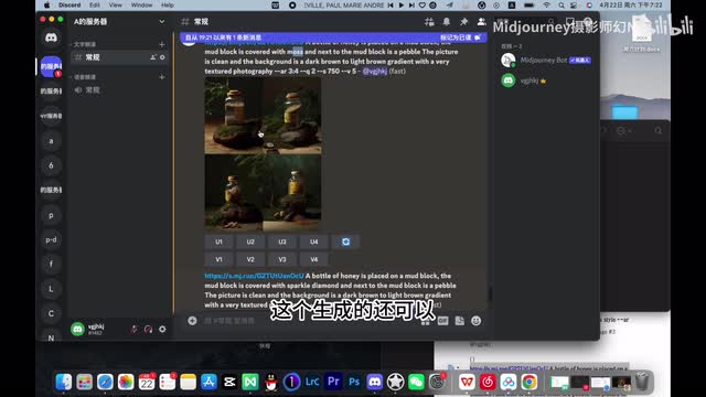 接下来的内容是一样的,我们把这个东西复制到disco de里面,斜杠image control v空格,然后它就会出现一个提示,你说yes,就是接下来它就会三组一起数列作图。第三个是针对于你说的这石块上有苔藓,第二个是石块上有钻石,第三个是石块上第二个是石块上有水晶,第三个是石块上有闪亮的钻石。但是呢因为我加了那一张一的图嘛,因为我加了这张图,所以对这张图的抄袭是比较重的。