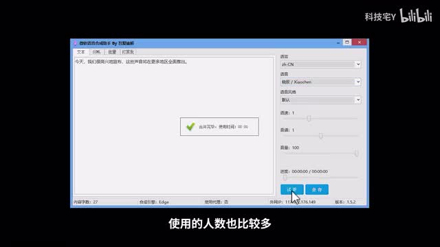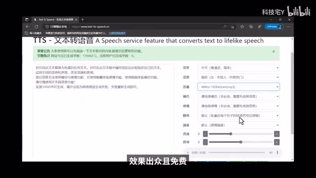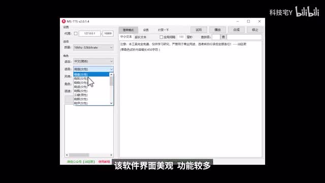 注意,本工具完全免费,仅供学习研究,严禁用于商业用途。第四个是由b站网友推出一个界面美观、简单易用的微软语音合成工具,效果不错,值得一用。