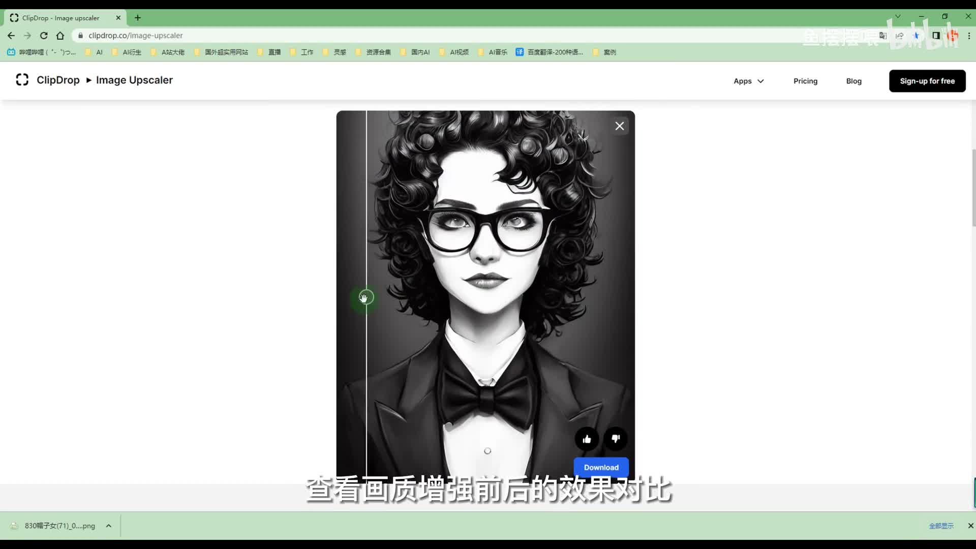 第一款非常简单的网页在线处理工具clip drop。这个工具我在之前的视频中有提到过,它的特点是简单快速,打开网页即可使用。缺点是效果一般,两倍免费,放大四倍则需要付费。
