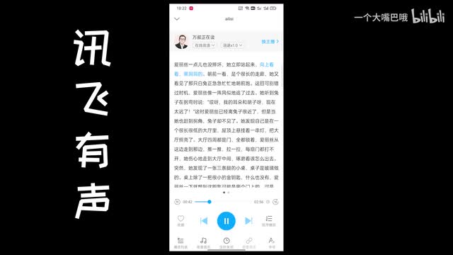 下面主要讲一讲可以把手机本地文本文件导入来进行a i智能朗读的听书软件。目前具有这个功能的软件国内主流的有七款,下面直接来看效果。第一款讯飞有声,爱丽丝一点儿也没摔坏,她立即站起来向上看看,黑洞洞的,不得不说,这听感有点拉胯第二款,qq阅读,感到非常好吃,它混合着樱桃馅饼、奶油蛋糕、菠萝烤火鸡,这听感还是拉胯第三款,咪咕阅读她的头上谈话,这赘述可够不舒服的了。