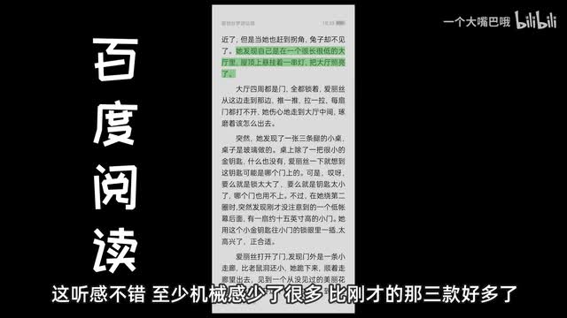 舒淇被阿里巴巴收购以后,应该有阿里云语音的技术加持。第六款,百度阅读。爱丽丝想经过了这次锻炼,我从楼梯上滚下来就不算多是家里的人都会说我多么勇敢,这个感觉好,读到人说话的地方,语语气有变化的,可以说是免免费的。