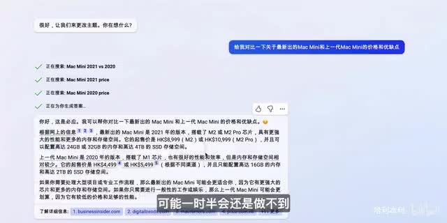 他会在网上搜寻相关信息,然后用人类的口吻和一大堆辅助段落来说服你他说的是正确的,他甚至会给你标出信息的来源。但是根据目前有内测资格的用户反应,newby的回复也是时好时坏。是对是错?只要我们完全依赖他给出的信息,可能一时半会儿还是做不到的。所以目前我们使用的这些工具,他们更多的还是一个小助手的的。色很多情况下并不能被我们完全信任,但是归根结底他们并不具备人类的感情和人类的思维。视频开头我们看到的new病,让人背后发凉的回答都只是数据训练的结果。