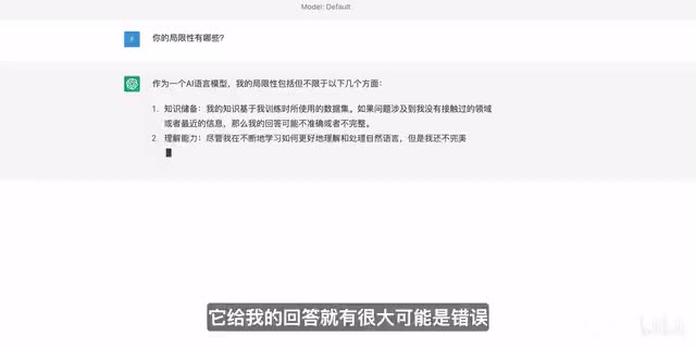 然而我们刚刚展示的也只是chat g p t的冰山一角,他可以做的事情还有很多很多,但是他的局限性也非常明显。首先因为它是一个预训练模型,他的回答是基于他被训练的数据和数据量。也就是说如果问他一个超出他认知范围之外的事情,他给我的回答就有很大可能是错误的。chat g p t目前还是没有时效性的,他的回答只能基于二零二一年以前的信息。所以比如我们问他关于二二年发布的iphone十四pro的问题,他就会开始胡编乱造。那即使是具有时效性的new bing,他的回答也不一定是完全正确的。