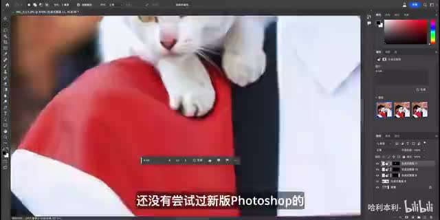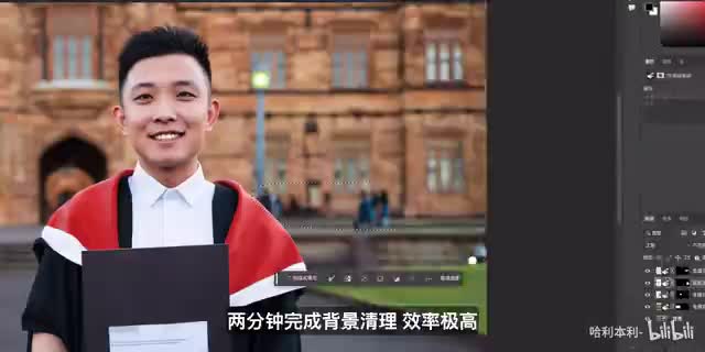 比如这里有一张我的毕业照片,但是背景的人很多很杂,如果想要去掉,现在我们只需要选中套索工具,把背景中的人物大致勾选出来,点击创成式填充,在这里输输入remote people,意思就是把人给去除,然后选择生成,稍等片刻,背景中的人物就神奇的消失了。如果你对这个效果不太满意,也可以从同时生成的其余两个版本中心选择,对于背景中的其他人物,我们也可以这样操作,两分钟完成背景清理,效率极高,效果怎么样大家说了算。如果你想要重新构图,也可以选择裁切工具,比如我们想让人物居中,拉过来之后选择矩形工具,框选白色区域,点击创成式填充之后直接生成,什么都不用写,这个效果也是选举形成的效果的不错。又比如我想让我的肩膀上出现一只小猫咪,我只需要框选住这个区域,输入一只小猫的英文,小猫就这样简单的生成。