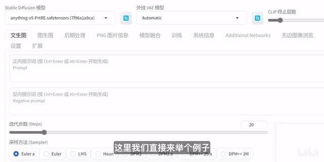 就是stable diffusion的本体。虽然看起来花里胡哨的东西有很多,但是一点也不用担心,入门绘图所需要的核心功能只有简单几个。这里我们直接来举个例子。首先确保我们在文生图这个页面,然后在提示词中写one girl,意思就是一个女孩。