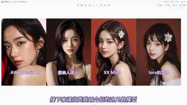 大家好,如果你想合成发丝细腻、皮肤有质感,能达到摄影感觉的图片,那本期介绍的模型将特别适合你。本期视频主要介绍的模型有a w torture it一点一。莫忧,人造人。