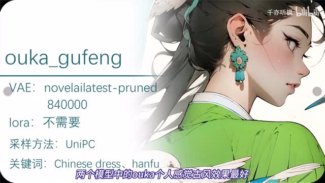 网址我会发到视频简介中。这个laura我试了。fit也能搭配,大家下去可以自己去试试搭配其他模型的效果。接下来介绍第二款模型,乌克古风,这一个模型作者名字就叫乌克外的搭配合成角色。