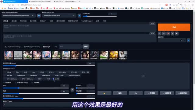 你就用上面这一个场景就用八十四万。laura不需要。当然你也可以用你常用的,然后采样方法用这个unique这个模型我试了一下,用这个效果是最好的,用这个也还可以,其他我还没试。我平时最常用的这个效果没有这两个好,作者推荐使用这个,最好就用这一个就行了。