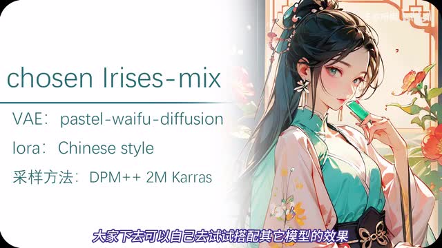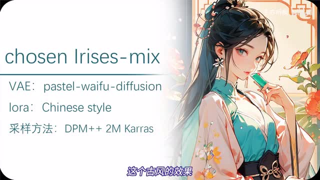 如果你平时对古风比较感兴趣,那今天分享的两款模型你值得拥有。第一款模型chosen arris mix x它搭配的是是tea a a a yl。这个古风的效果主要是这个laura chinese style了,关键性的作用其实就是名字chinese style。采样方法用d p m加加二m carrot,其他参数用你常用的就行了。