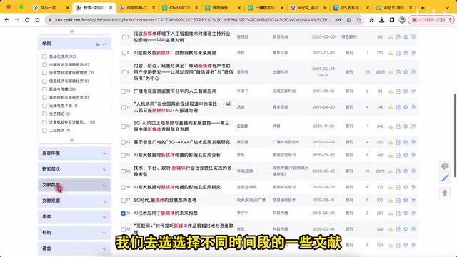 勾选完之后我们点击,然后我们点击导出文献,选择这样的一个查询的格式。这里就可以看到整个文件的一些题目,还有一些摘要的一些内容都给列出来了。这个时候我们点击导出,点击这个word的这个图标d o c,点击导出,这个时候我们就打开文心一言这个工具。我们现在新建一个对话,然后呢,点击加号按钮,然后这里有一个阅览文件的这样的一个工具。这个工具可以上传文档,解析我们文档里的内容。